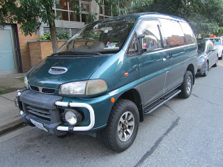 People here say it's the first blue sky day in weeks. Everything is pretty green---the West Coast rainforest--so I believe them. One thing you see a lot of in Vancouver and on the Island are these gnarly little 4WD vans, usually Mitsubishis, imported from Japan, righthand steering and all.