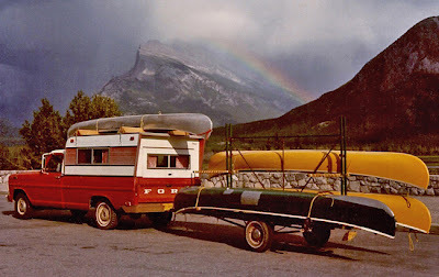 "68 Ford, Banff, Alberta, Canada" JW Burleson ©2012I seem to remember that this truck, which belonged to the photographer Bill Burleson, had a Saskatchewan Farmers Union sticker in a corner of the windshield. Those canoes met rocks from time to time in the Bow River. In the Athabaska, too. Never travel anywhere in Canada without a couple rolls of duct tape.