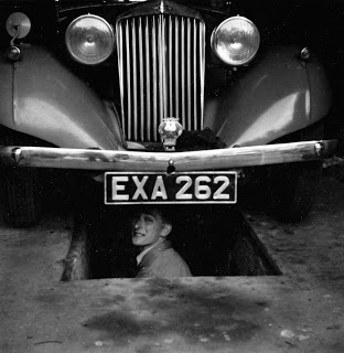 "My Dad in his youth, working on his Talbot in England. He loved a pit.Talbot 10 Sports Tourer."--A.L.