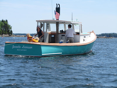 When I was a kid in Cape Porpoise, Maine in the Sixties this was pretty much the vernacular style of work boat, often powered by a Buick V8. Lobsterboats run diesel now, and like everything else in American life they have been supersized. So it was nice to see the Janette Lamson looking so sleek and nimble. According to her owner, Alec Brainerd of Artisan Boatworks in Rockport,