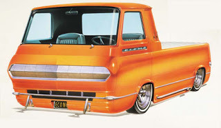 Dan Picasso just sent us some excellent Econoline iconography, including this drawing of a concepted E-line that looks like someone borrowed the little Saskatchewan truck around 1969, and sleeked it out: