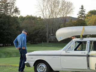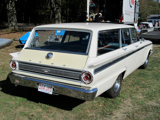 Back in October we were involved in an LL Bean photo shoot over on Mount Desert Island. They were basically reconstructing a catalogue cover from the early 1960s, which had a station wagon of the era, canoe strapped on the roof, etc. I'd been recruited to be one of the characters in the scene--I think I was supposed to be "Gramps" though no one actually said that. ANyway, I had a pipe as one of my props. The most interesting thing from my POV was this nice little Fairlane wagon that they had scouted and had come up from Massachusetts. I have a weird passion for station wagons , especially of that era and especially Fords.