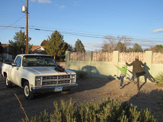 Les gars avec leur pouletsPB immediately caught a ride on the bus over to Ricky Rojo's house to grab our Marfa wheels. Ricky has been babysitting the Custom Deluxe and rebuilding the transmission: the truck is in good shape, and we are contemplating a truck-trip to Austin sometime this winter.