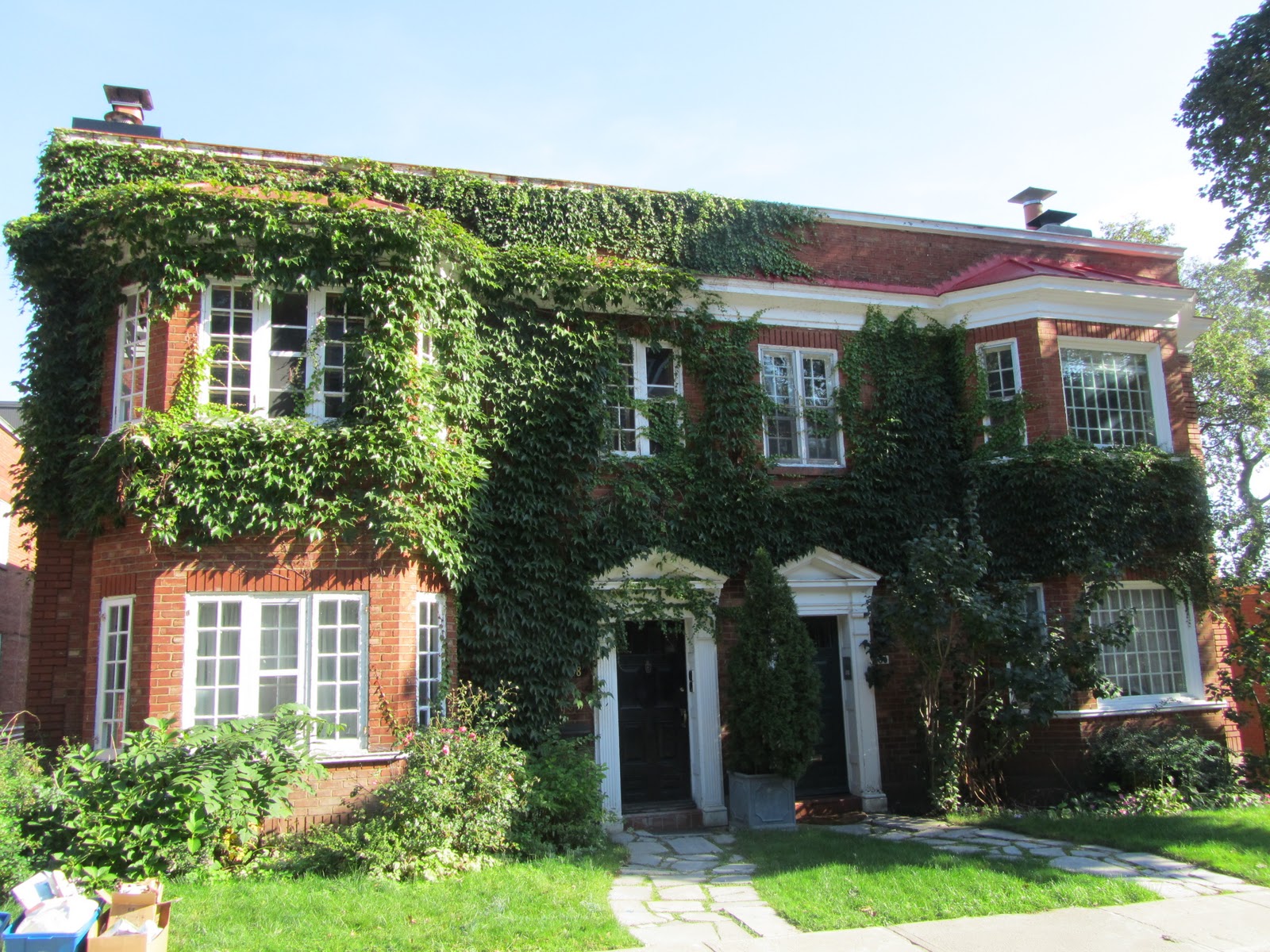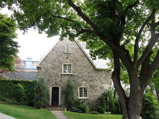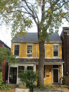 The best thing about Toronto are the neighborhoods and while I walked from a meeting at College and Bathurst to another in Rosedale, I kept to the quiet and shady streets of The Annex neighborhood, which are thriving but don't feel triumphalist, yet, though I realize even the homeliest house in this part of town is well over a million dollars. Mostly they are simple, not particularly well-built houses from the 1880s-1920s. Almost all red brick, of an Ontario clay quite different from Montreal red brick. So much red brick that when I spotted this little yellow house, I had to catch it.