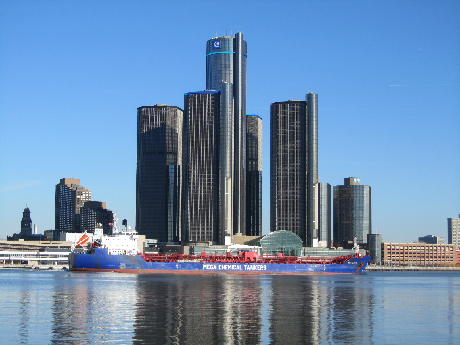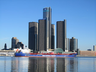 It was such a beautiful day at Windsor. Guys were fishing (pickerel and perch) in the St. Clair; big bulk carriers were steaming by heading for Lake Huron, leaving big, splashy waves to bang up against the river shore....and gleaming Detroit looked like anything but a rust-belt town.