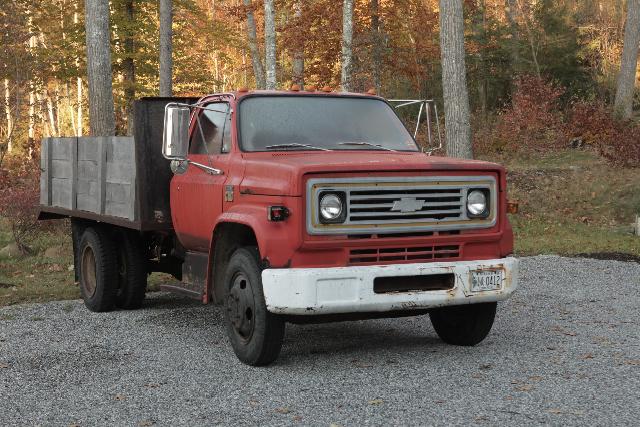 The C trucks were produced from 1967 to the late 80s in a variety of bodies: they were farm trucks and commercial haulers, medium-duty. (We're getting a bit trainspotterish here, I realize.) This one is in the period 1973-90 but my limited expertise can't get any closer than that. It looks to be in pretty solid shape for an old saltwater Maine truck.