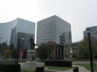 Montreal has a pretty strong modernist moment in the 1960s; I.M. Pei's Place Ville Marie is one of the important buildings of that era. Most of what was built in the Seventies and Eighties was, by comparison, unfortunate.