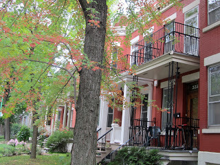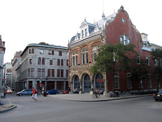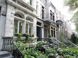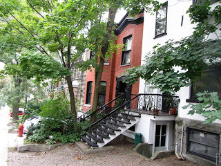 I have always been intrigued by Montreal architecture, and when I was last there, in September, on the Endless O'Briens Book Tour I went around taking photos of buildings and streets which I admired. Of course in that September light the whole place looked "beautiful"; like a (somewhat banal) movie of itself. In one of his Montreal short stories, the author Clark Blaise has a character thinking, as he's driving on a hideous road in the sprawl of northern Montreal exurbs, that Montreal can also be a heartbreakingly ugly city, one of the ugliest. And that is undeniably true, especially in, say, March. But there's also no denying its radiant power as a built place, as a vibrant & changing town with a sure sense of itself. Montreal has always possessed its own urban style. The town Montreal may remind you of most is not Paris (the only thing they have in common is the French language, sort of; the argots of Montrealais and Parisien are the same language, but only just) but Brooklyn, another mostly 19th century sprawling industrial town: row houses, neighbourhoods, industrial zones, churches. Of course Brooklyn has Manhattan across the river, which makes a difference. One o the wonderful things about Montreal compared to any other city in the world counting as major is how easy it is to leave. Cross the bridges to the south shore and in fifteen minutes you're driving past cornfields. Head north, and in forty five minutes you're into bear and moose country.