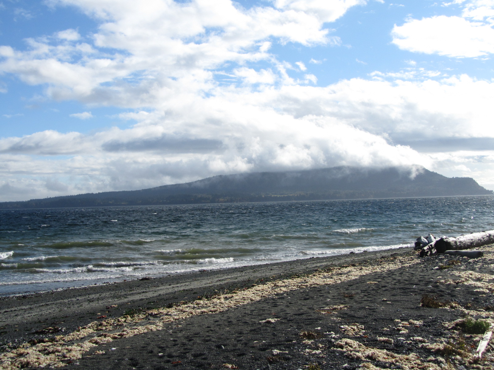 The best thing about book tours is getting off track, seeing old friends, and exploring astonishing parts of Canada, such as Denman Island. (Below) is a actually a view of Hornby I., from the beach at Denman. It was supposed to rain (this is British Columbia--the coastal rainforest, after all) but it didn't.