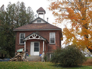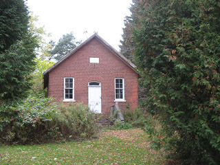 I'm on the book tour, which starts to seem endless. Airports and hotels. The only thing to do is to get in a car, get out of the city, find the country roads, and get lost. On Wednesday--no, Thursday--I headed out of Toronto, where I'm at the IFOA, for Belleville, Ontario, and a talk/reading the city's Public Library. Instead of zooming on the 401 freeway, I cut away at Port Granby/ Bond Head and followed a patchwork of little roads heading east along the northern shore of Lake Ontario. The round wound its way through very rich alluvial farmland and tiny Ontario farm towns: a very Loyalist/Irish Protestant landscape, "the Front" as it used to be known in Susannah Moodie's day. (viz., "Roughing it in the Bush"). I kept coming across tiny brick schoolhouses---"separate (Catholic) schools" from the days when public education in Ontario (and Quebec) was denominational.