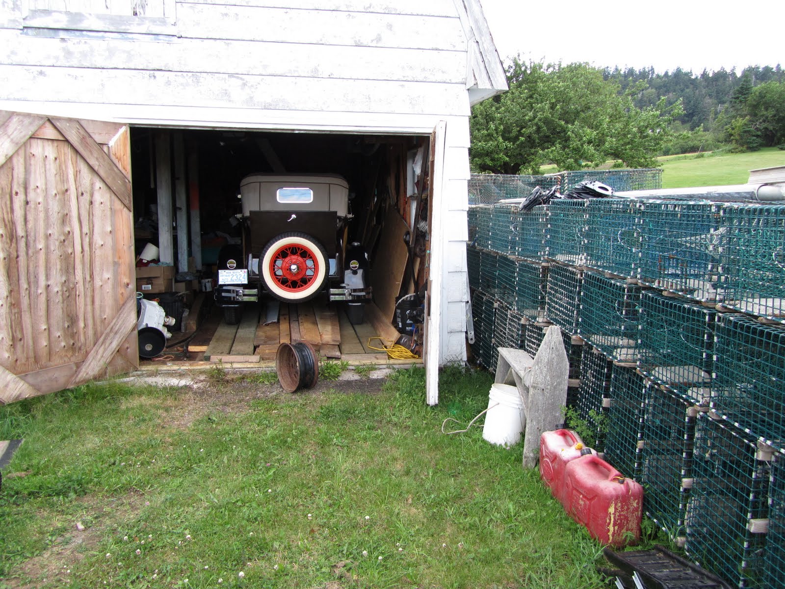 Larry is a lobsterman and after he mentioned owning a couple of old cars we ducked out of the party, jumped into his minivan, and headed up the road to his barn. Where he swung open the door,