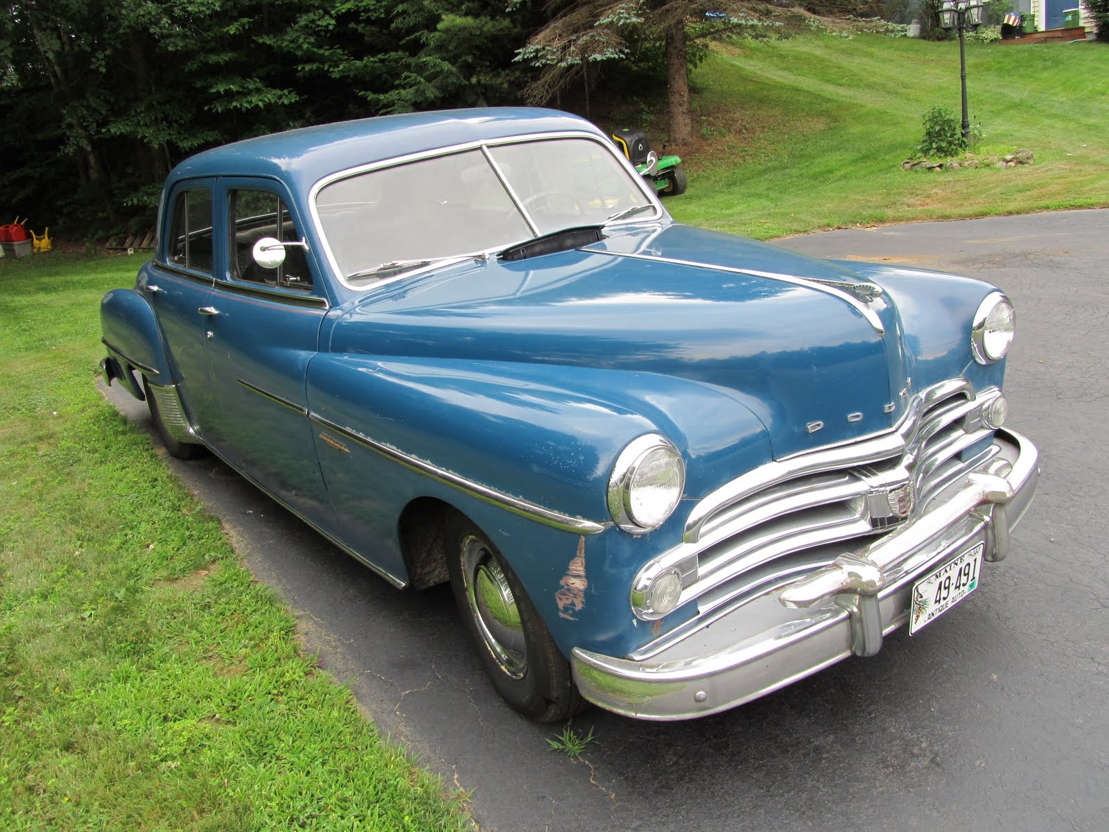 And from the other side of the continent: driving the back roads from Montreal home to Maine, Autoliterate caught this 1950 Dodge in W. Sumner, Maine. It looks like a very-nearly-original car, in excellent shape, though the parking brake was perhaps untrustworthy, which is why a rock was wedged in front of the driver's-side-rear tire.