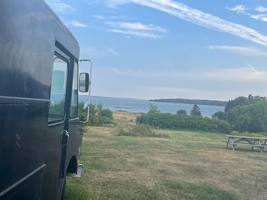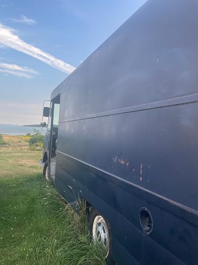 International panel truck delivering Vagabond Coffee in Portland, Maine.