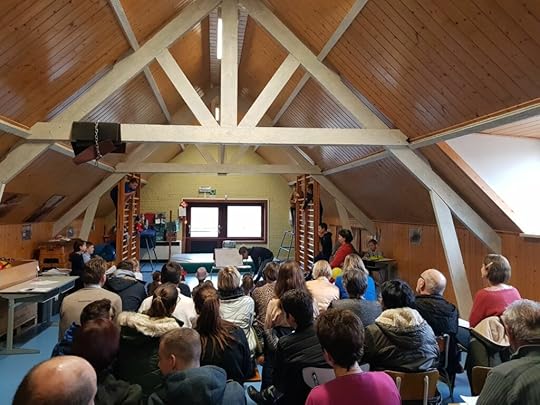De dag voor de talentenshow kwam hij vertellen dat hij toch aan zijn mama zou vragen of ze wilde komen naar de show. Ik lachte en vroeg of hij het goed vond dat een ander kindje dat wel graag voor het publiek iets zei zou vertellen over zijn talent. Hij knikte. De mama van Seppe kwam. Seppe was zo trots. De bloemetjes stond kleurig rondom het podium.