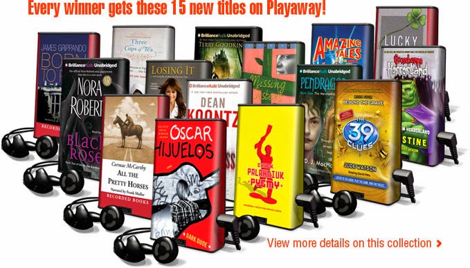 What is playaway you ask. Well a playaway is a small device that plays pre-downloaded audiobooks. They are the size of a deck of cards and all you need is a AAA battery and some headphones to enjoy them. I love playaways because I was growing tired of downloading the audiobooks from the library. Depending on my internet connection, it took a while to download. I know downloading something isn't a big deal, but it was an extra, cumbersome step that had mostly stopped me from using my library's digital selection.
