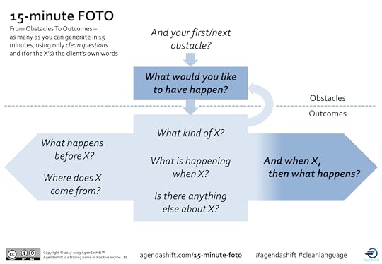 As a spinoff from Boston (there’ll be discounts for attendees), from June I’ll be offering an online workshop, also titled Learning the language of outcomes. Presented as two 2-hour sessions on consecutive days it will be a great way to get up to speed quickly with outcome-orientation and Clean Language, getting some real practice in applying the latter to the former. At a minimum we’ll cover: