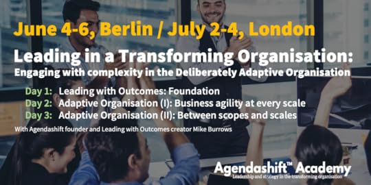 Leading with Outcomes: Foundation Adaptive Organisation, two parts: Part I: Business agility at every scale Part II: Between spaces, scopes, and scalesOr get in touch about holding a Leading in a Transforming Organisation training workshop near you; this covers Foundation and Adaptive Organisation, with all the benefits of an in-person experience, and some unique features too. I’m not asking anyone to take responsibility for the event (though that can be arranged); just your interest would be good to know.