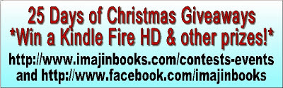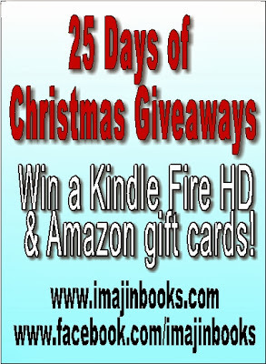 Want to win even more? Check out their "Share the Imajin Books Buzz" contest. You could win a Kindle Fire HD or Kobo equivalent, or one of two $50 Amazon gift cards. This contest also runs December 1-25. To enter, visit http://www.imajinbooks.com/contests-events. You can enter multiple times a day.
