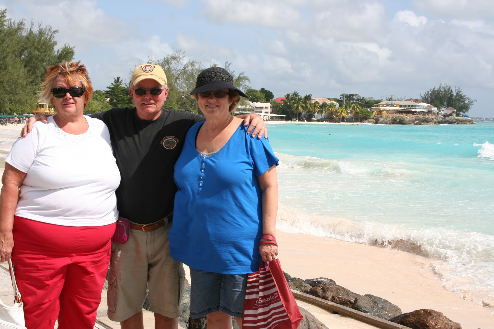Unfortunately, during the night of November 27, 2003, my younger sister died in her sleep of massive heart failure. Of course any date on which this tragedy befell would have been awful, but it’s such a shame it’s on Wendy’s birthday. Cugina doesn’t forget, though – this morning, as we pass this day in Barbados, she lifts her juice to toast Candace. I tell her about my nephew’s Facebook posting: a picture of Candy, his mom, and my Dad, who also died too young, held in Nick’s arms, along with this new baby son, Owen. I cried, naturally, and Cugina gets tears in her eyes, too. On November 28, 2003, as soon as I called and told Wendy about our loss, she came right over to hug us and cry with us. Just one example of her kindheartedness.