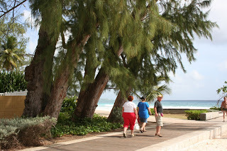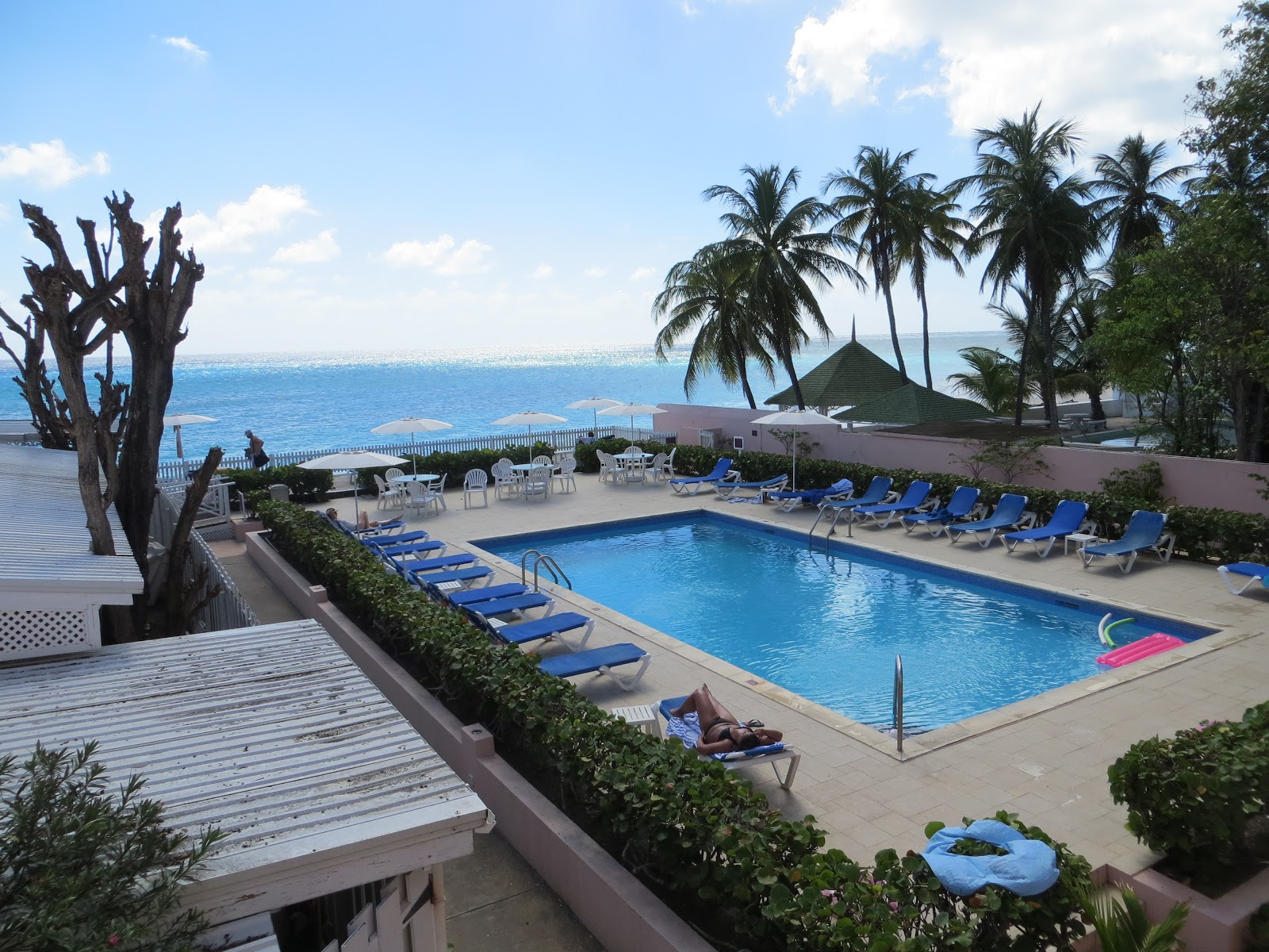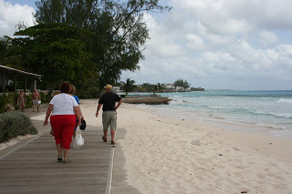 We love it. The stronger wind keeps up, along with the clouds, so it’s comfortable to walk along even in the heat of midday. We discover the Accra Beach Hotel at the end and have lunch (the food is good, but the service is incredibly slooowww…even for Bajan time). We all agree that our hotel is better. The Butterfly is small, quaint, and has no activities or pounding music going all day – and we love that!