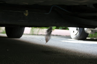 This time, Vince drives. As we roll along the narrow street, we spy, with horror, a rooster lying on the pavement. We’re not sure if he’s alive or dead, though Dennis swears he sees the little red head poke up just as we bump right over him. We drive back to the hotel with feathers in the chassis.