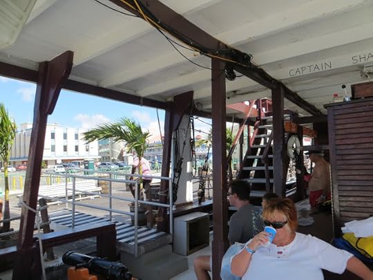 Bajans are so proud of their country. Most of them sport their flag. It’s got a wide blue stripe on either side, with a yellow band in the middle, upon which a trident appears in black. The handle of the trident is broken. The blue represents the sea on both sides, the yellow is the light coloured sand of the island. The trident has three prongs that stand for their government: of, by, and for the people. Since they have split from Britain and become their country (1966), they show the handle as broken. November 30, they will celebrate 46 years of independence. Cugina and Dennis will be here for the celebrations, the lu’y lu’y bahstahds.