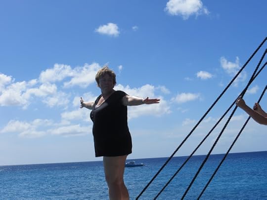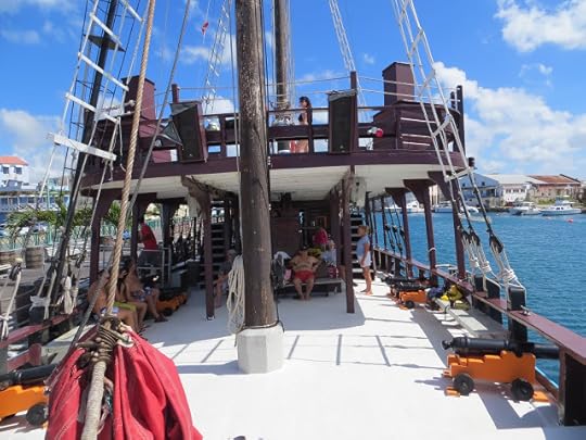 My baby sister had reminded me this morning of the trip she took with our mom and dad years ago, on a Jolly Roger ship similar to the Black Pearl version we’re on. After a few rum punches, they began to neck, which really grossed her out. By the time I am finished this cruise, I want to bring my whole family with me. The kids would have a ball and the adults would become foolish and fun.