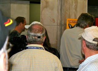 Always I return to thoughts of my books, my daughter’s producer/casting skills, my son’s scripts, my daughter-in-law’s acting career. Some day the cameras will be trained on them. Where they walk will be an event. We decide to take the incline train (though we call it the funicular, that word’s way more fun) up the hill. We have to go through the Welcome Centre to reach the overpass for the train. As we make our way through the crowded hallways, we notice a big crowd gathered and lots of “camera guys”. Turns out Nik Wallenda is here being interviewed and photographed. He is really trying hard to get my attention. We see him close up, but forget to take a picture until he’s on his way out. So all you can see is the back of his head.