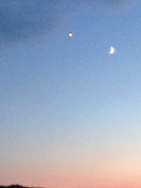 The sky is clear and blue, those little white clouds following us, the gulls' wings etched across them.