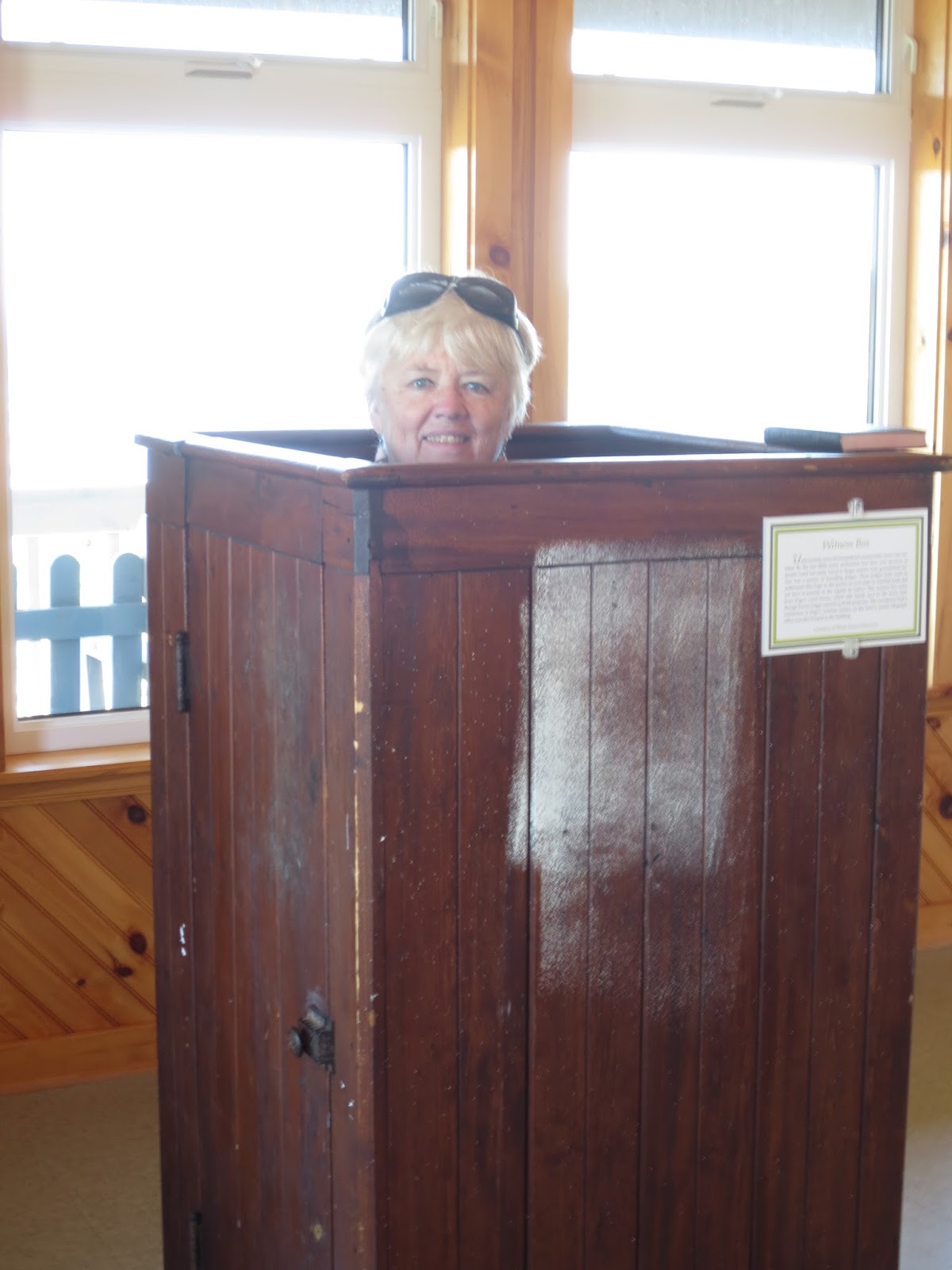 <!-- /* Font Definitions */ @font-face {font-family:Times; panose-1:2 0 5 0 0 0 0 0 0 0; mso-font-charset:0; mso-generic-font-family:auto; mso-font-pitch:variable; mso-font-signature:3 0 0 0 1 0;} @font-face {font-family:"MS 明朝"; panose-1:0 0 0 0 0 0 0 0 0 0; mso-font-charset:128; mso-generic-font-family:roman; mso-font-format:other; mso-font-pitch:fixed; mso-font-signature:1 134676480 16 0 131072 0;} @font-face {font-family:"MS 明朝"; panose-1:0 0 0 0 0 0 0 0 0 0; mso-font-charset:128; mso-generic-font-family:roman; mso-font-format:other; mso-font-pitch:fixed; mso-font-signature:1 134676480 16 0 131072 0;} @font-face {font-family:Cambria; panose-1:2 4 5 3 5 4 6 3 2 4; mso-font-charset:0; mso-generic-font-family:auto; mso-font-pitch:variable; mso-font-signature:3 0 0 0 1 0;} /* Style Definitions */ p.MsoNormal, li.MsoNormal, div.MsoNormal {mso-style-unhide:no; mso-style-qformat:yes; mso-style-parent:""; margin:0in; margin-bottom:.0001pt; mso-pagination:widow-orphan; font-size:12.0pt; font-family:Cambria; mso-ascii-font-family:Cambria; mso-ascii-theme-font:minor-latin; mso-fareast-font-family:"MS 明朝"; mso-fareast-theme-font:minor-fareast; mso-hansi-font-family:Cambria; mso-hansi-theme-font:minor-latin; mso-bidi-font-family:"Times New Roman"; mso-bidi-theme-font:minor-bidi;} p {mso-style-noshow:yes; mso-style-priority:99; mso-margin-top-alt:auto; margin-right:0in; mso-margin-bottom-alt:auto; margin-left:0in; mso-pagination:widow-orphan; font-size:10.0pt; font-family:Times; mso-fareast-font-family:"MS 明朝"; mso-fareast-theme-font:minor-fareast; mso-bidi-font-family:"Times New Roman";} .MsoChpDefault {mso-style-type:export-only; mso-default-props:yes; font-family:Cambria; mso-ascii-font-family:Cambria; mso-ascii-theme-font:minor-latin; mso-fareast-font-family:"MS 明朝"; mso-fareast-theme-font:minor-fareast; mso-hansi-font-family:Cambria; mso-hansi-theme-font:minor-latin; mso-bidi-font-family:"Times New Roman"; mso-bidi-theme-font:minor-bidi;} @page WordSection1 {size:8.5in 11.0in; margin:1.0in 1.25in 1.0in 1.25in; mso-header-margin:.5in; mso-footer-margin:.5in; mso-paper-source:0;} div.WordSection1 {page:WordSection1;} </style> --> Our gift from Wendy and Dennis: a colouring book and pencil crayons! I can’t wait to start colouring.<br /><br /><br /><table align="center" cellpadding="0" cellspacing="0" class="tr-caption-container" style="margin-left: auto; margin-right: auto; text-align: center;"><tbody><tr><td style="text-align: center;"><a href="https://2.bp.blogspot.com/-BAC2IHyG7u..." imageanchor="1" style="margin-left: auto; margin-right: auto;"><img border="0" height="240" src="https://2.bp.blogspot.com/-BAC2IHyG7u..." width="320" /></a></td></tr><tr><td class="tr-caption" style="text-align: center;">Dennis tries to light our fire one more time without success.</td></tr></tbody></table><br /><b>July 10:</b> In the morning we have our scones and jam and coffee before setting off to line up for the ferry. Our timing is perfect and we drive onto the vessel nearly at the front. Despite a cool wind that has moved in during the night, we have a pleasant trip, watching the birds circle under the morning sun. We blow a kiss goodbye to our sail-ship iceberg.<br /><br />Off we go to Trinity. With only a minor stop in Gander for munchies and gas, we power through to the little village. Here the trees are once more plump and crowded, filled in with bushes. Wild flowers complement the green with purple clover, yellow buttercups and white and orange daisies.<br /><div class="separator" style="clear: both; text-align: center;"><a href="https://1.bp.blogspot.com/-C2M58dbhNg..." imageanchor="1" style="margin-left: 1em; margin-right: 1em;"><img border="0" height="240" src="https://1.bp.blogspot.com/-C2M58dbhNg..." width="320" /></a></div><br /><br />We weave through construction, annoying drivers, and gorgeous scenery in turn. When we turn off the Trans Canada Highway, we can glimpse the coastline through the trees, sparkling blue in the sun. Little coves and tickles, the bright colours of nature and people intertwined.<br /><br />The sun follows us all the way. Just as we round the corner into the valley of Trinity Bay, we notice the cap of clouds that fits perfectly over the town. We’re in for a rough ride of weather!<br /><br />After checking into our lovely rooms in the quaint B & B, Ericksen Premises, we enjoy a cold beer in the common room.<br /><div class="separator" style="clear: both; text-align: center;"><a href="https://4.bp.blogspot.com/-o_olRHP-AC..." imageanchor="1" style="margin-left: 1em; margin-right: 1em;"><img border="0" height="240" src="https://4.bp.blogspot.com/-o_olRHP-AC..." width="320" /></a></div><br />We take a walk around the village while we can do so. As Wendy says in our booklet, “Where else does the end of the rainbow have a street address? The gorgeous town of Trinity really does look like a film set.” The clapboard buildings, a church here, lots of B & B’s there, the Rising Tide Theatre, homes, even a bank, are all those deep, gorgeous Newfoundland colours, or at least trimmed with deep reds or greens. Crab and lobster traps line the ocean. The lighthouse beams outward.<br /><div class="separator" style="clear: both; text-align: center;"><a href="https://3.bp.blogspot.com/-gGjr1GHTkD..." imageanchor="1" style="margin-left: 1em; margin-right: 1em;"><img border="0" height="240" src="https://3.bp.blogspot.com/-gGjr1GHTkD..." width="320" /></a></div><br /><br />Trinity seems to be the lupin capital of Canada. The purple, pink and white flowers are everywhere, lush and assertive and glorious.<br /><div class="separator" style="clear: both; text-align: center;"><a href="https://1.bp.blogspot.com/-XcEEoH1WDC..." imageanchor="1" style="margin-left: 1em; margin-right: 1em;"><img border="0" height="240" src="https://1.bp.blogspot.com/-XcEEoH1WDC..." width="320" /></a></div><br />After our walk we drink and laugh and talk in the common room once more. Denni