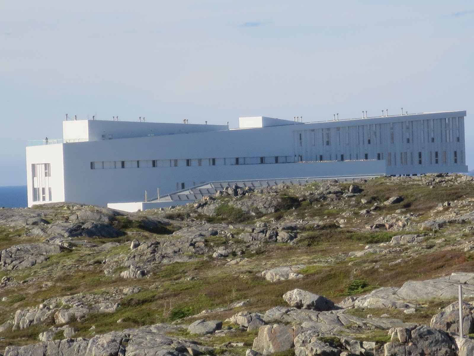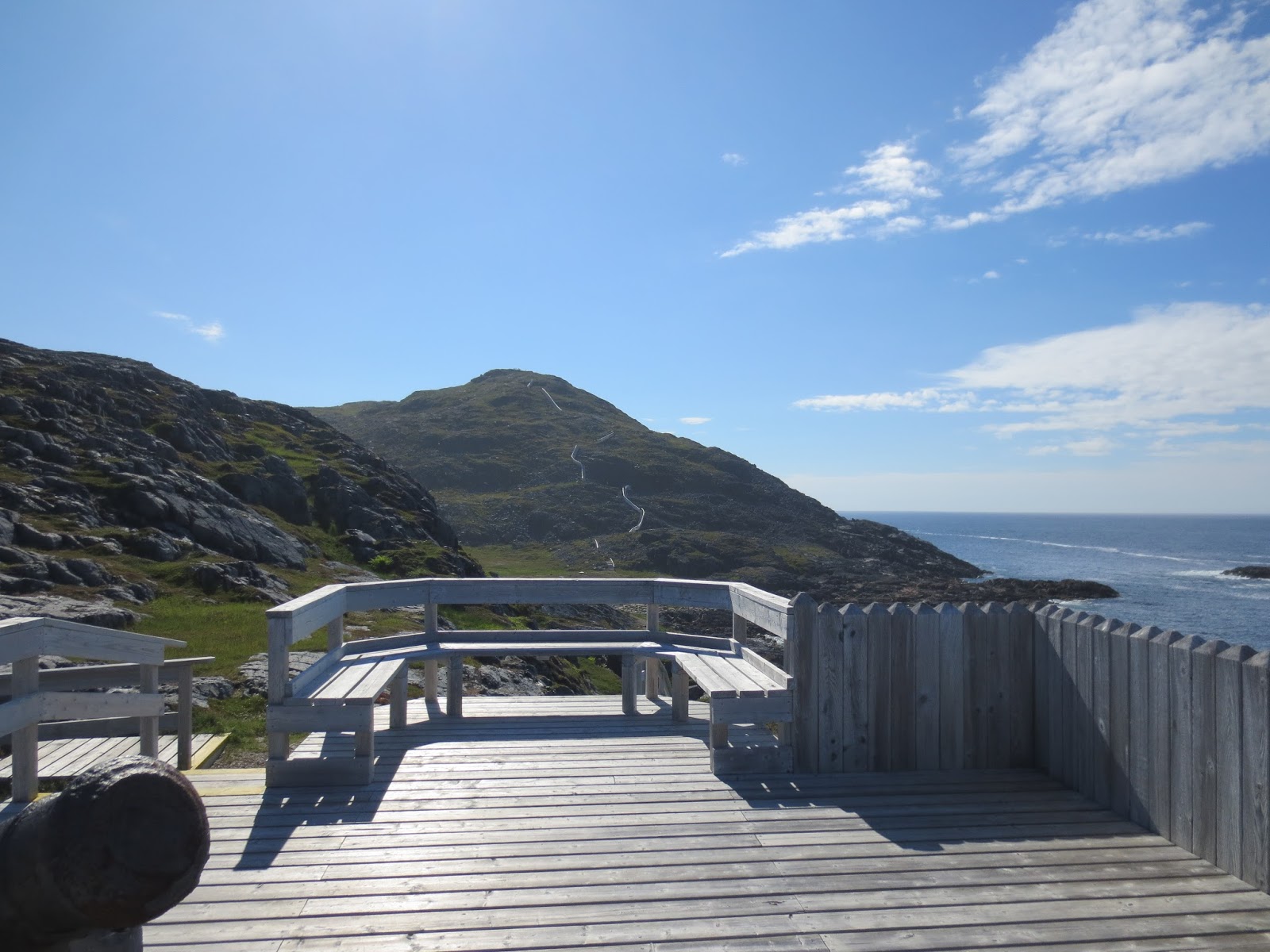 As our booklet tells us: “Unique adventure awaits. What’s around the next bend in the road? A picturesque fishing village? A breaching humpback? A glistening iceberg? There are fiords and mountain vistas of stunning beauty. Places where sky meets horizon in blazing colour, and where stands of spruce flow in an evergreen sea.” And it’s true. We’ll suddenly come around a corner and there is a sulky blue bay, white-tipped waves rolling, a ship slicing through. On one side sheer rock points to the sky, their carved shapes laced with red and black and white. We make a comfort stop at the Terra Nova Provincial Park information centre and wander through the exhibits. Birds and animals that need protection, sea life, and a beautiful vista over the lake.