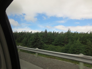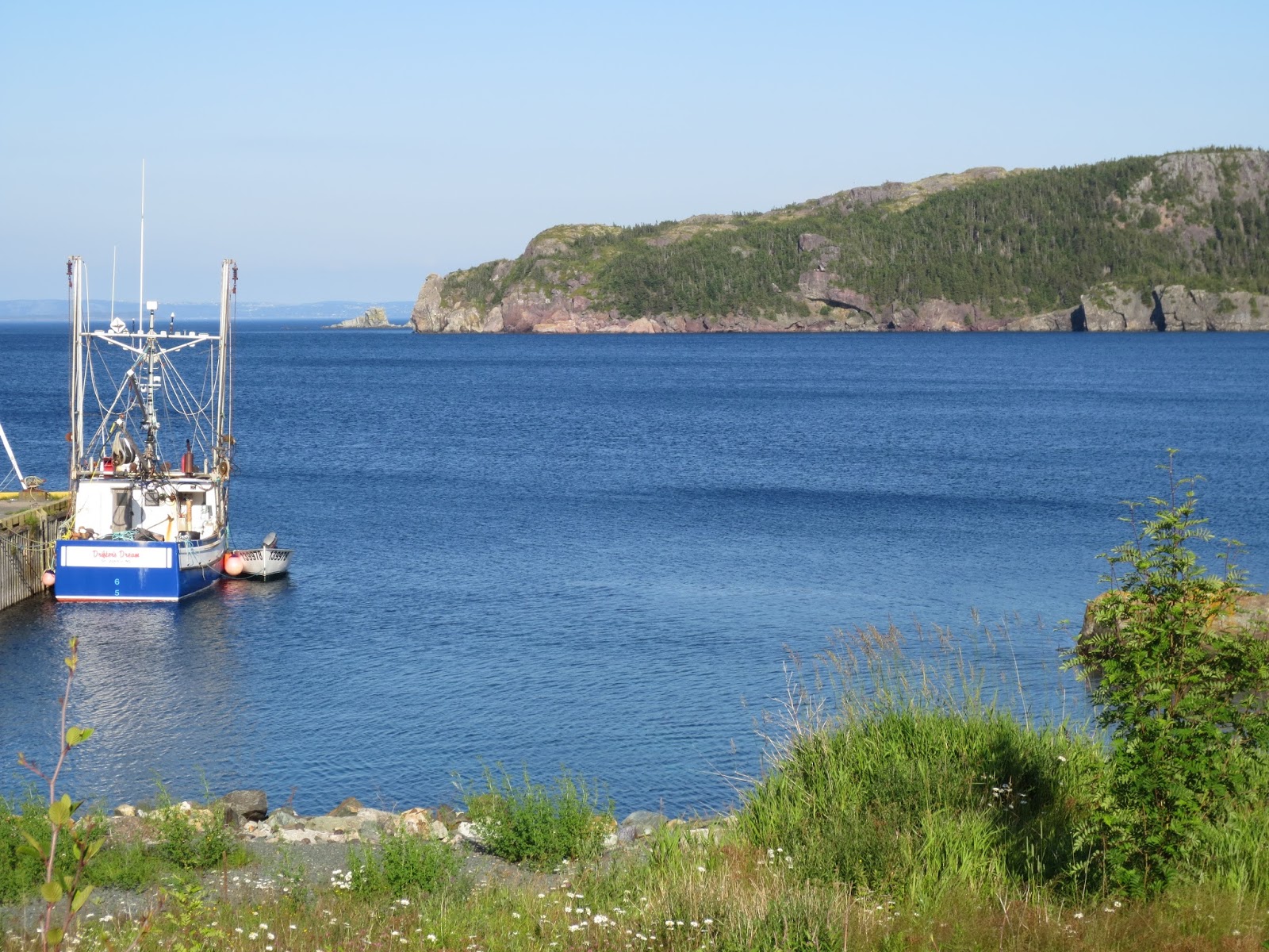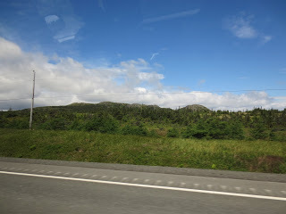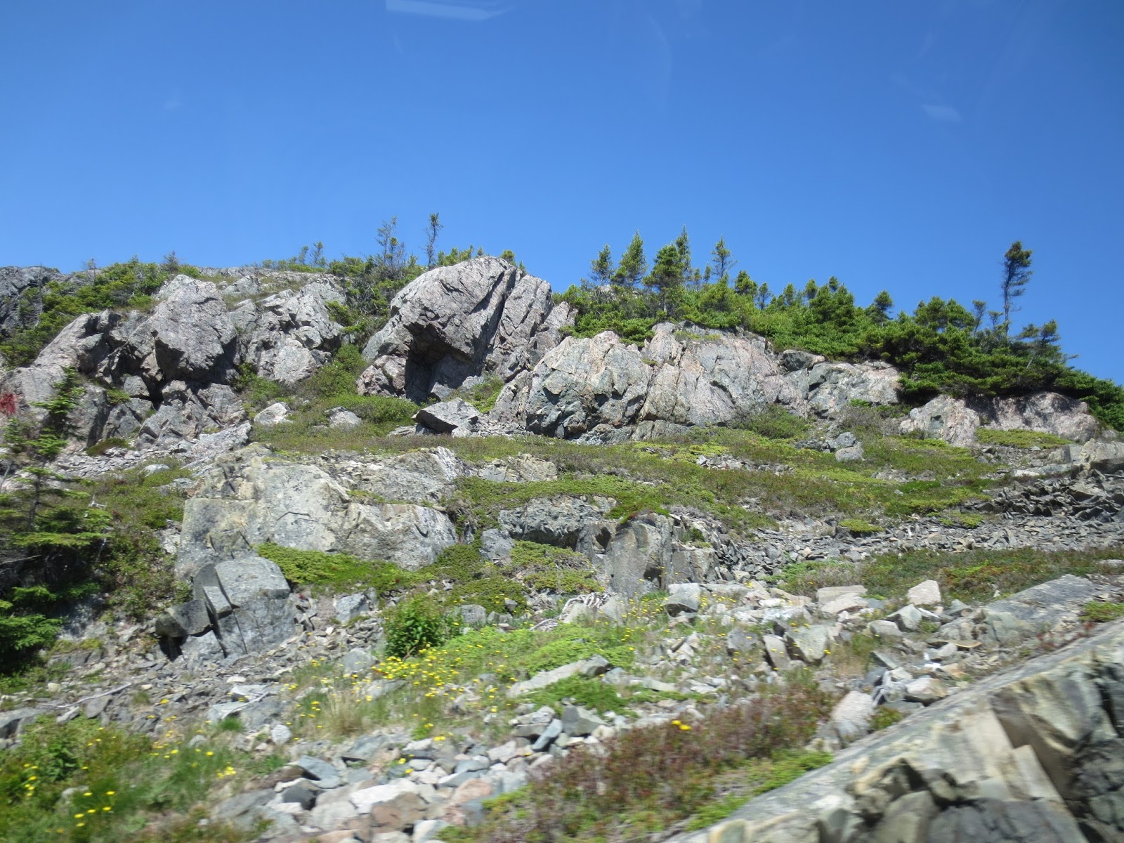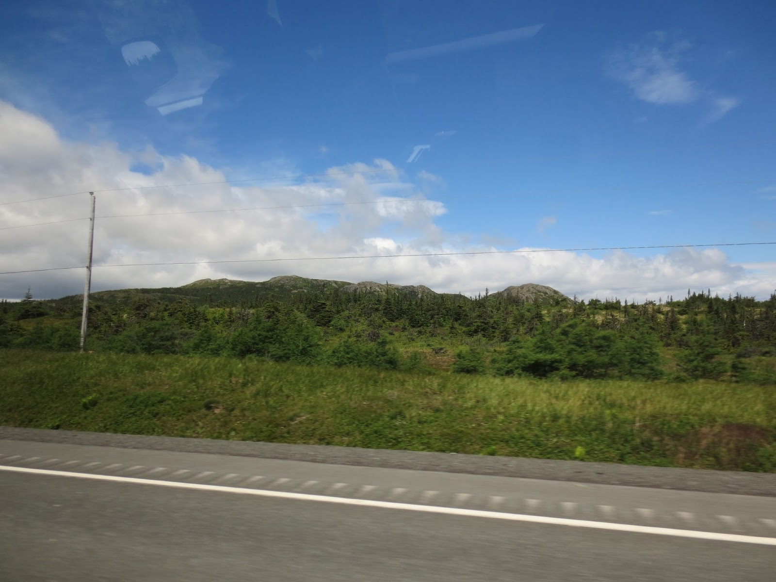 Off we go to Grand Falls-Windsor, along the winding road from the Avalon Peninsula toward the Bonavista Peninsula, through thick forests and a pallet of green that has every shade and nuance you can dream up. Here and there a deep blue pops up in the form of lakes and rivers and ponds. Mist dances across the water until the sun comes out to bathe it all in silver. Now and then we drive up and across treeless and moss-covered terrain, the Newfoundland Rock. We pass signs to Conception Bay, Come by Chance, Heart’s Delight, Dildo, Deep Bight, Tickle Harbour.