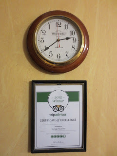 July 6, 2016: At 6 a.m. we catch a cab with Maire and John, meet Wendy and Dennis at the airport, and off we go. Now I’m excited, looking forward to the new adventure. I sleep until twenty minutes before landing, so I’m refreshed and raring to go. Our B & B, the Elizabeth Manor, is not one of our favourites, mainly because we discover we have to share a bathroom that’s on two different floors. Sharing’s okay, but climbing in the middle of the night is not. Wendy and Dennis insist on doing the climb, though we do search for a bucket. The gardens out back are spectacular. Too bad they’re drenched from the pouring rain during the night and early this morning. It continues to drizzle, but the greenery is bursting because of it.