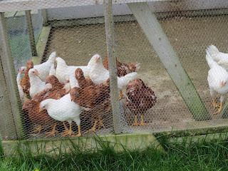 We walk through the flowers and bushes and trails, swing on the garden swing, talk to the chickens and Mia, the resident dog. Breakfast is indeed sumptuous - particularly the plump raisin-filled scones!