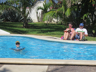 Now for a few hours by the pool! There's a cooling breeze, the warm is warm and silky, the sun is hot and caressing.