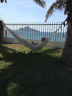 Jorge helps John put up a hammock between two trees in the garden. Oh my! If I get in there, with the sound of the sea and the breeze wafting over me, I may never get back out again.