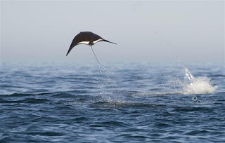 If they are jumping to escape a predator, that might not be good news, since the only one to hunt them is a shark.
