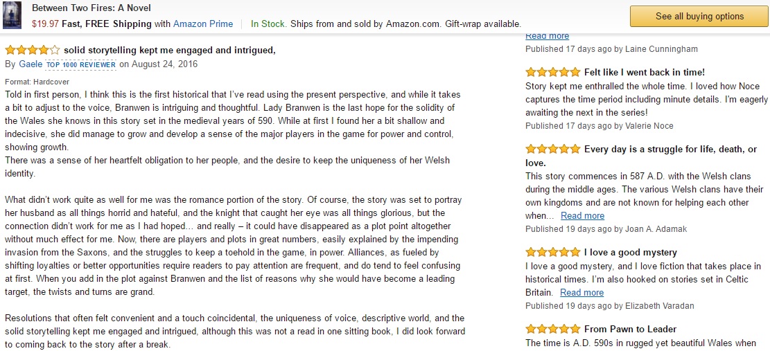 People have been leaving some great reviews of Between Two Fires on both Goodreads and Amazon! Of course, I can always use more reviews, so I've you've read a copy of my novel, I'd super appreciate you leaving a review. Good or bad, high or low, I always appreciate an honest review. Thanks!