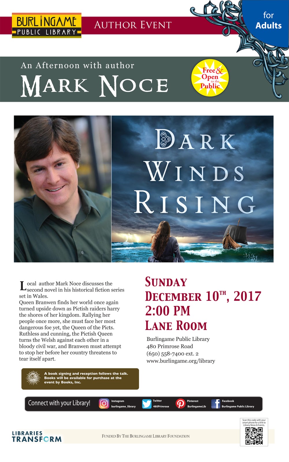 In preparation for my upcoming release of Dark Winds Rising this December, I’ve recently revamped my website. Now both of my books will be available: pre-orders for Dark Winds Rising and Between Two Fires purchases wherever books are sold. Marknoce.com.