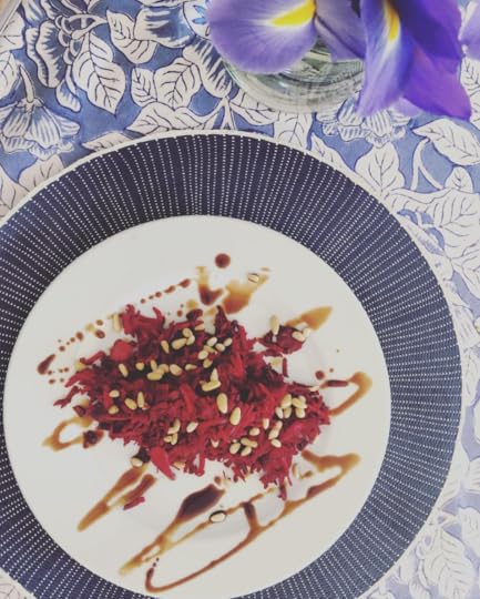 Delicious, sweet, lovely beets. My first memory of eating beets in which I devoured them was just about five years ago at a steak house. The restaurant sliced them into quarters and then into 1/4″ flat slices, roasted them in the oven with olive oil and finished with a smidge of salt and pepper. They were divine. Again, roasted vegetables, you really cannot go wrong and the simplicity of such a side is a time-saver. Or you can do what I did below as I learned while listening to Milk Street Radio’s podcast. Using a food processor, after peeling the beet (which is the best way to stain your hands the least, pre-cooking), using the grating blade, shred your beets. Then place in a sauté pan with either grape seed oil or olive oil for 8-10 minutes, stirring from time to time. Then finish with balsamic vinegar and pine nuts. A time saver and the sweet delicousness of the beets is amplified with the balsamic.