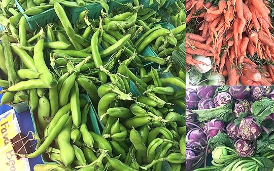 Recently, as you will see below, I picked up some fava beans. These gorgeous, ginormous green pods grabbed my attention, but I honestly did not know how to cook them. However, I must confess, I had just seen Paris Can Wait, in which Diane Lane’s character enjoys bruschetta topped with fava beans. Consequently, I was quite curious to figure out how to make such an appetizer. So I asked the farmer. He gave me some delicious ideas, as well as instructions on how to properly cook the fava beans (blanche in the pod for a couple of minutes, pop out the fava beans after submerging in cold water, peel off the hard outer shell and voila!). He also suggested pairing the fava beans with capers and a little bit of olive oil, smashing them all together and smearing the mixture on top of the bruschetta. I took his word, and he was absolutely right. Delicious!