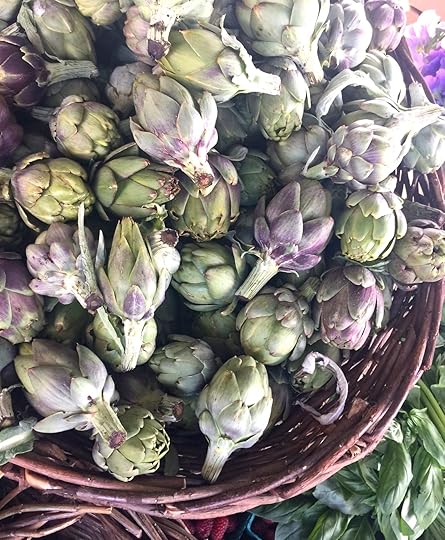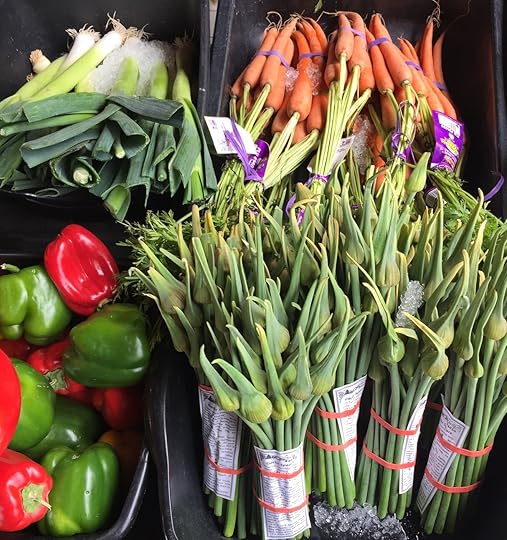 Farmers markets sell what is in season. An abundant amount of artichokes are available because spring is wrapping up. Soon the tomatoes will be available, but not yet (at least not here in Bend). What I appreciate about visiting the markets is that I am gently forced to try new vegetables and fruits. For example, the garlic spears below were something I have never cooked with, but again, I asked the farmer what he would do with them, and he gave me some simple ideas. He also informed me that they are only available for a few weeks due to their short growing season, which gives all the more reason to give them a try.