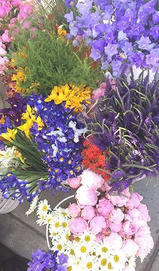 As well, just as you become introduced to new food, you also discover new varietals of flowers which was the case for me this year. As you will see below, a brilliant violet/purple flower caught my eye two weeks in a row. And while I didn’t know what it was, I knew I loved it. Well, thanks to TSLL readers, I snapped a pic and asked if anyone knew what it was called (I guess I could have asked the vendor as well, but they were swamped with other flower lovers), and the name is just as beautiful as the flower itself: des campanules en français or campanulas (bellflowers).