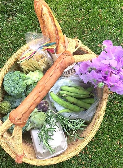 ~last week’s budget called for farm fresh eggs, a rosemary plant for the herb garden, broccoli, baby artichokes, fava beans, sweat peas (the smell is intoxicating!), lemon pepper pasta and a fresh baguette~