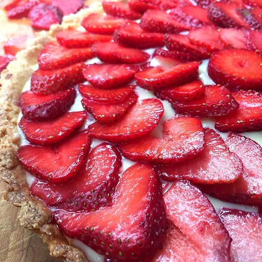 sugarthe original recipe called for 3/4 which after tasting my tart with the fresh strawberries was determined to be too sweet. So add to taste based on the sweetness of the fruit.