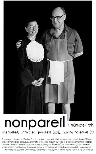 In 2016 her new memoir was released, In My Own Words in which for the first time since becoming a United States Supreme Court justice in 1993 she shares her journey, her stories and her wisdom about living a life that seems to incorporate it all: a successful career, happy and healthy children and a loving partnership. And it was her husband Marty Ginsburg who passed away in 2010 (seen in the photo with Ruth above) that inspired today’s Word of the Week, nonpareil.