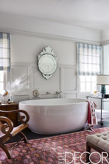 Per usual, the master bath has captured my attention. Take me to this soaking tub and let me be. Oh, how I want to dip my toes, my body and my being in this oasis. Don’t you? But the beauty while in the bathroom is also throughout the entire sanctuary, from the front door accessorized with a 1960s armchair just outside the front stoop to the gazebo bedecked with a glorious chandelier. Take a look, enjoy the tour and learn more about the entire decor process and the Speechless actress here as it was featured in Elle Decor most recently.