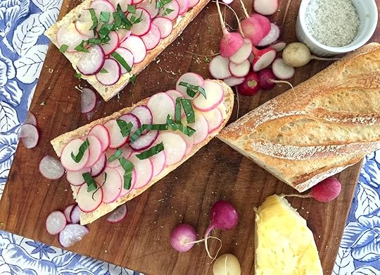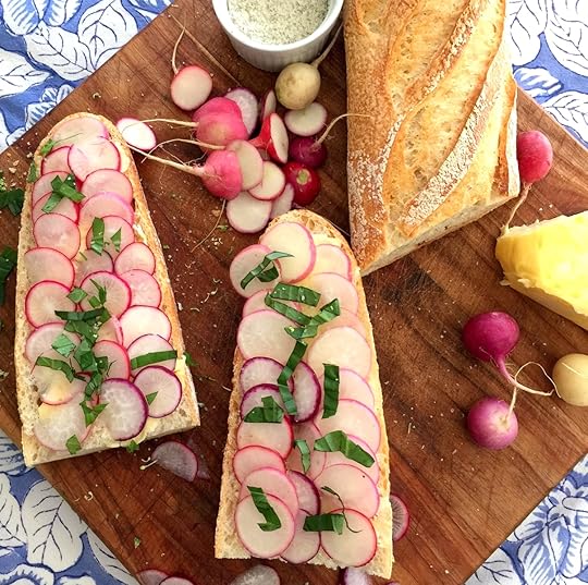 Spring arrives tomorrow! And I thought, what recipe could I share that would be simple, delicious and welcome the fresh start of the seasonal new year? As I began poking around I discovered a simple French snack that requires minimal time and very little skills. Simply slice, spread and savor.
