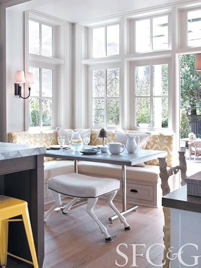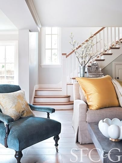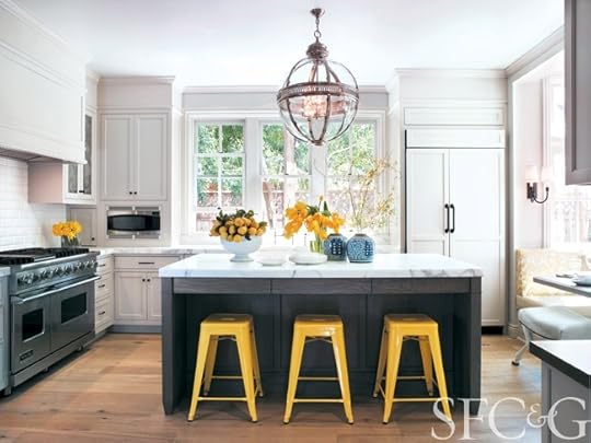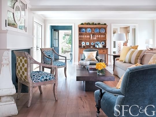 The moment we step into our homes, we cannot snap our fingers and materialize the sanctuary we dream of. No. We must live, experience and exist in the home first and then, the right details, with a careful eye, fall into perfect place. Featured in San Francisco Cottages & Gardens in 2014, this Mill Valley home just outside of the Golden Gate destination reveals the subtle details make the finishing touch. From a family heirloom 19th-century French barometer clock in the entry (see just below), to a burst of yellow in each of the common rooms on the first floor, even the upholstery while subtle offers the encouragement to smile and find your happy place. Upstairs as well, with the Kneedler wallpaper, matching wooden twin beds and even in the powder room finished with blue faux-bois wallpaper is from Nobilis, the details make the difference between a living in a home or a house. Enjoy the tour, and learn more about the master mind behind the interior design, Benjamin Dhong and his approach here.