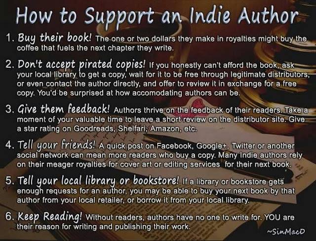 Here are a few ways you can help your favorite Indie Authors. And don't fret. Most of these don't require spending money!